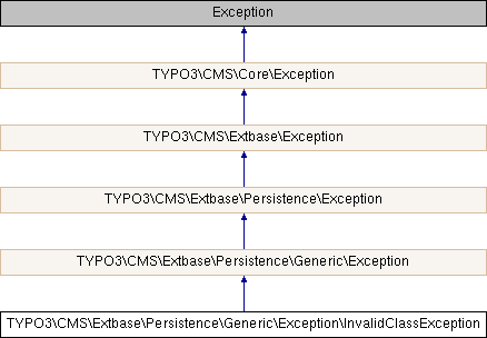 Inheritance diagram for TYPO3\CMS\Extbase\Persistence\Generic\Exception\InvalidClassException: