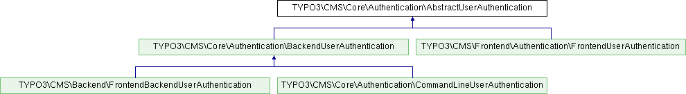 TYPO3\CMS\Core\Authentication\BackendUserAuthentication TYPO3\CMS\Frontend\Authentication\FrontendUserAuthentication TYPO3\CMS\Backend\FrontendBackendUserAuthentication TYPO3\CMS\Core\Authentication\CommandLineUserAuthentication